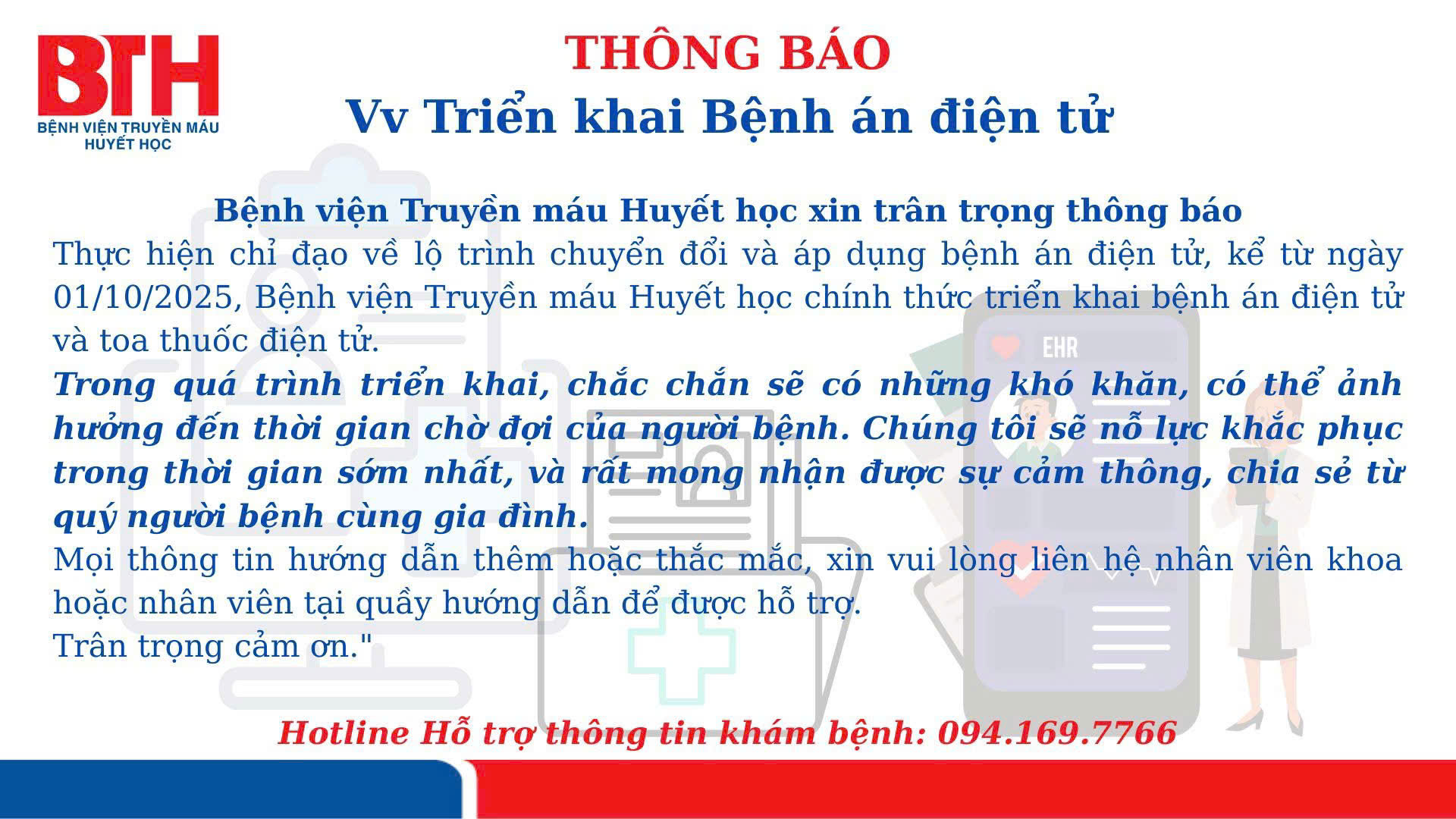 THÔNG BÁO V/v TRIỂN KHAI BỆNH ÁN ĐIỆN TỬ