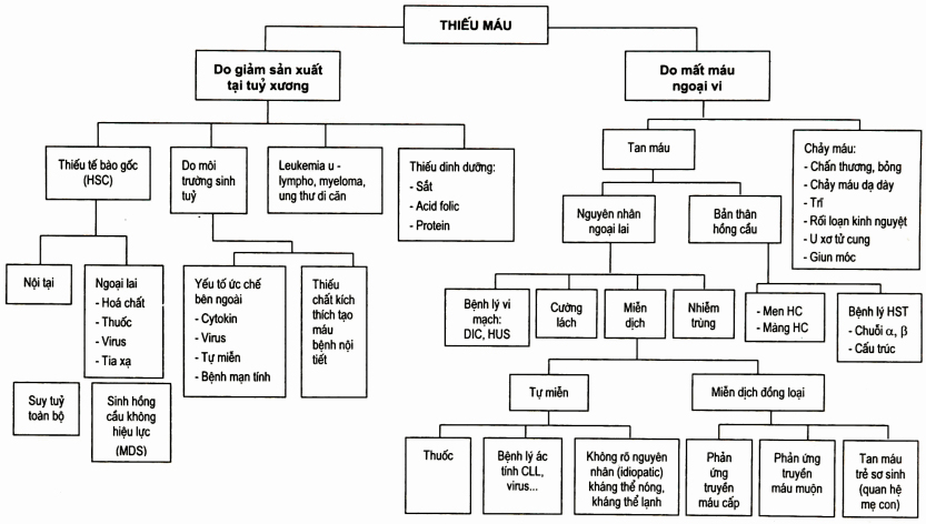 Hình 1: Phân loại nguyên nhân gây thiếu máu